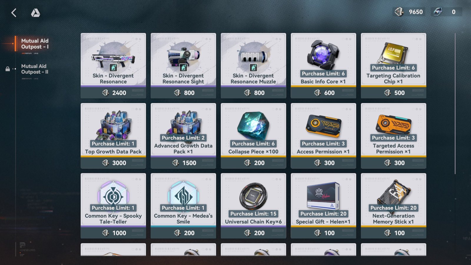 | Skin – Divergent Resonance | 1 | 2400 |