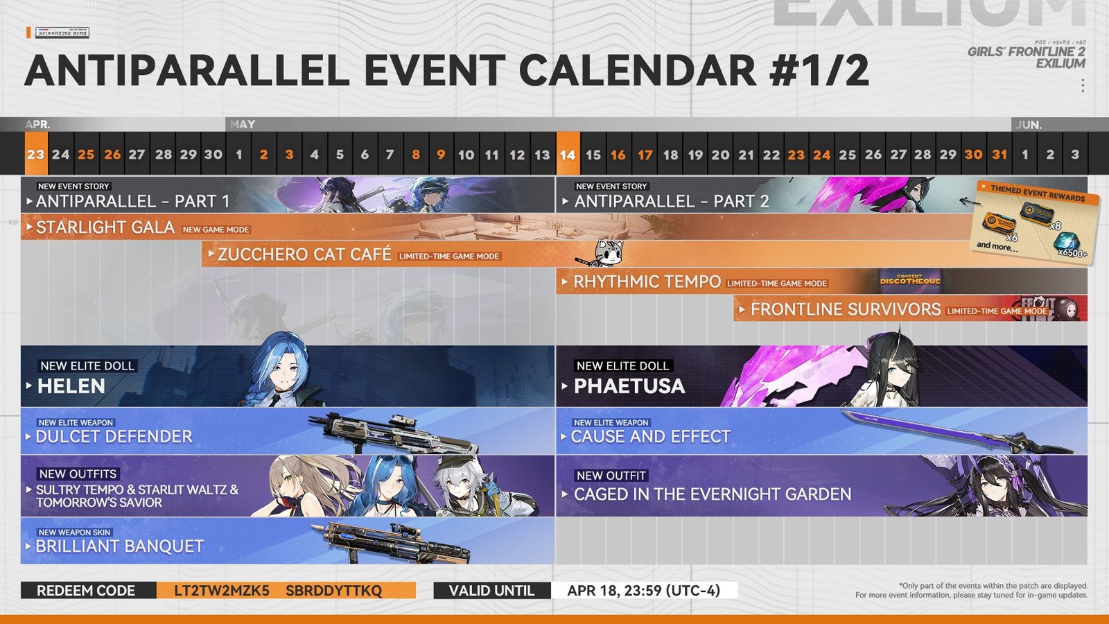 The latest Belian Island Episode 14 broadcast just wrapped up, giving us a full look at the late April to May schedule for Girls’ Frontline 2 Exilium.