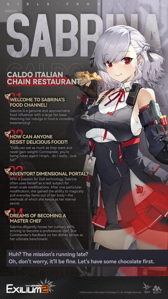 - Strategy: By putting Sabrina and Suomi together, you trade some offensive speed for absolute safety. Sabrina sits in the middle of the enemy group to draw aggro, while Suomi layers shields over her so that she never actually takes health damage.