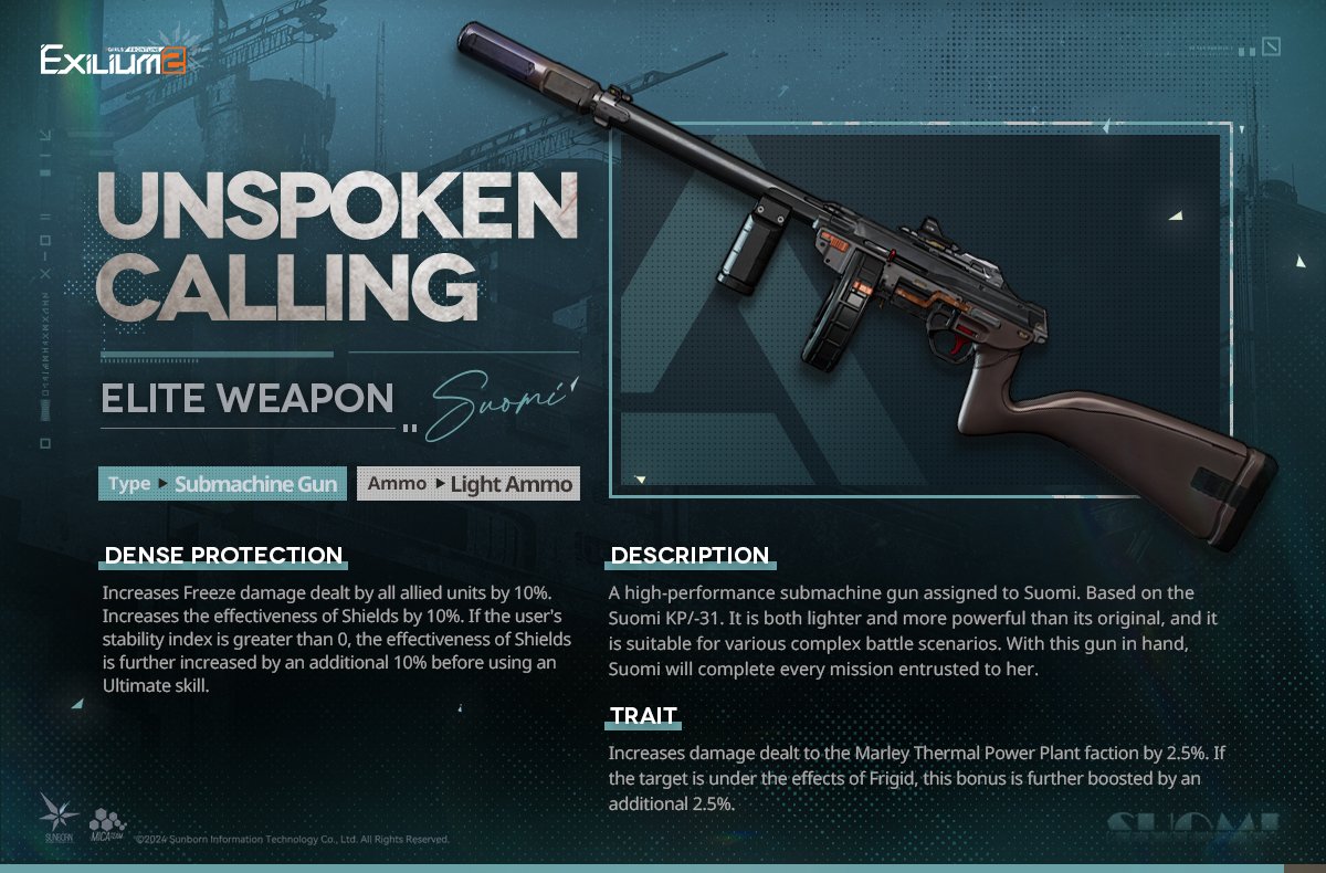 - Effect: Boosts Freeze damage for the whole team and increases Suomi’s shield values by up to 40% when using her Ultimate.