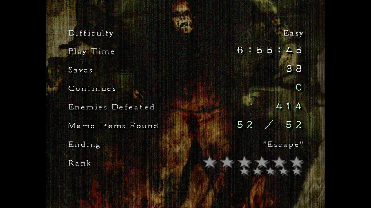 My original clear file after finishing Silent Hill 4: The Room.